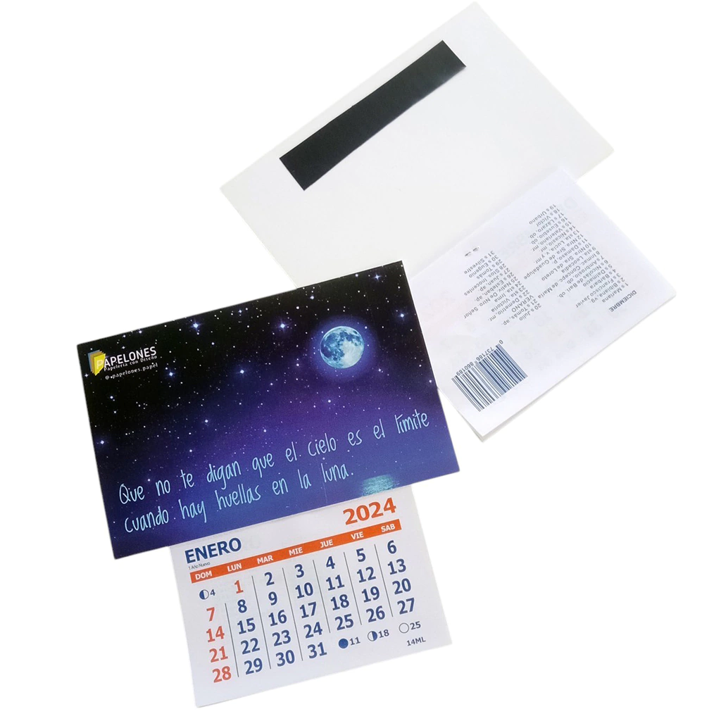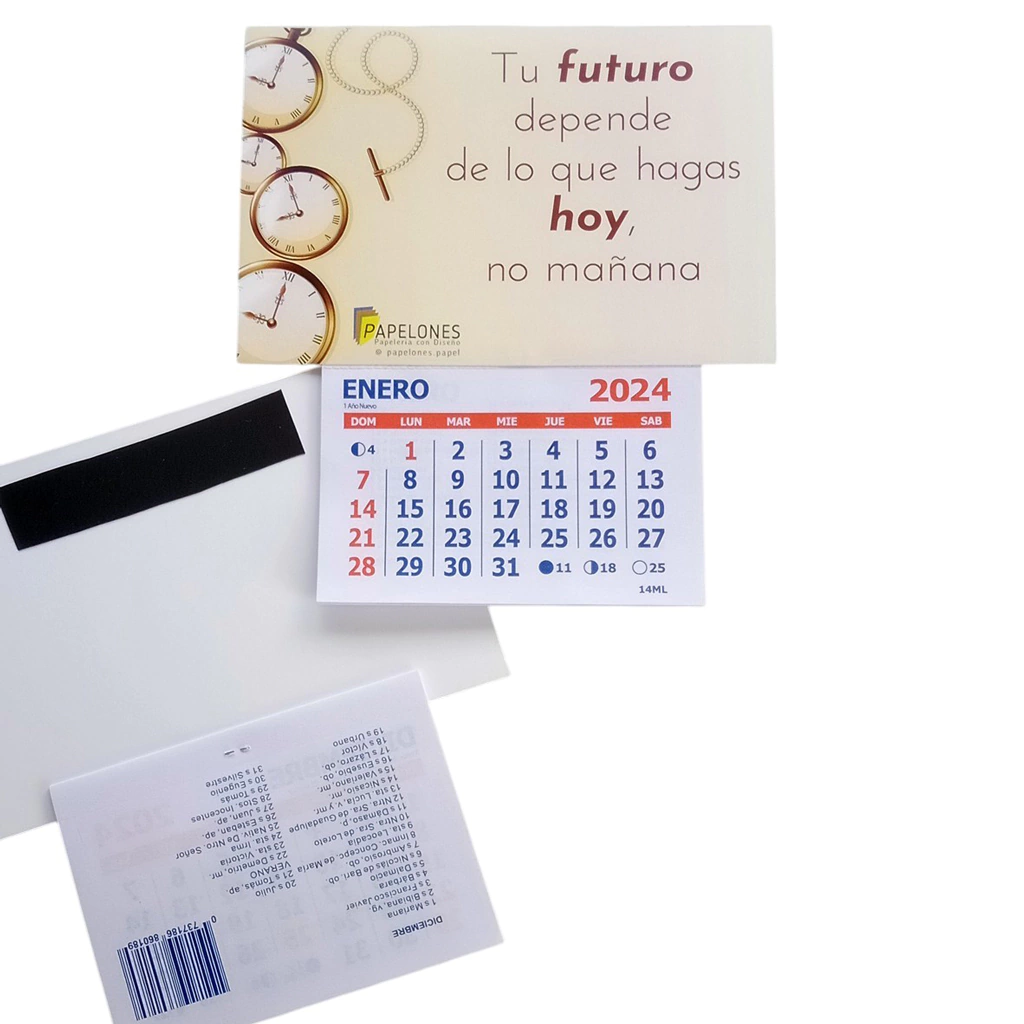 Una alternativa económica para los clásicos imanes con almanaque. En este caso, la promoción está impresa sobre una tarjeta con un cuadrado de imán en la parte posterior.